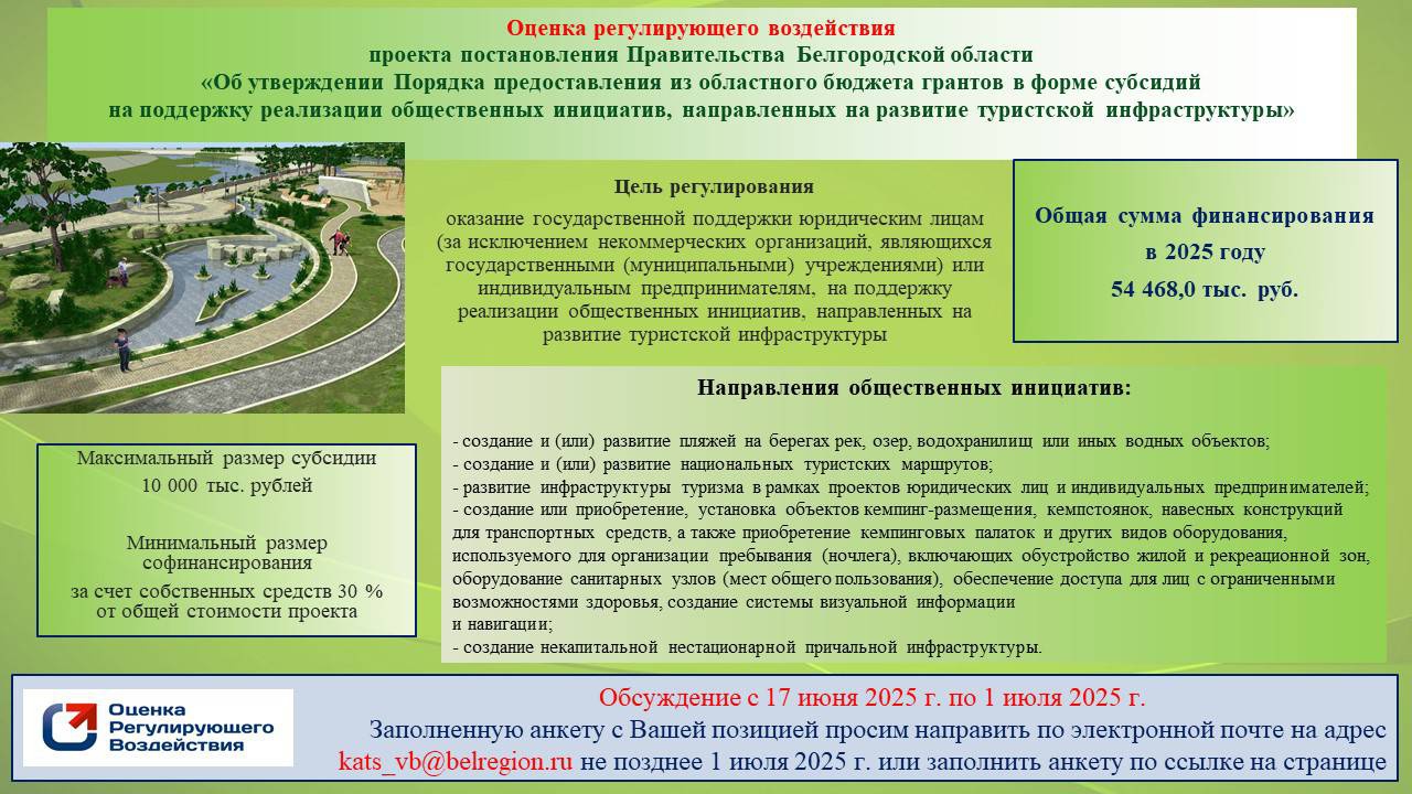 Пояснительная записка к проекту постановления Правительства Белгородской области «Об утверждении Порядка предоставления из областного бюджета грантов в форме субсидий на поддержку реализации общественных инициатив, направленных на развитие туристской инфраструктуры»