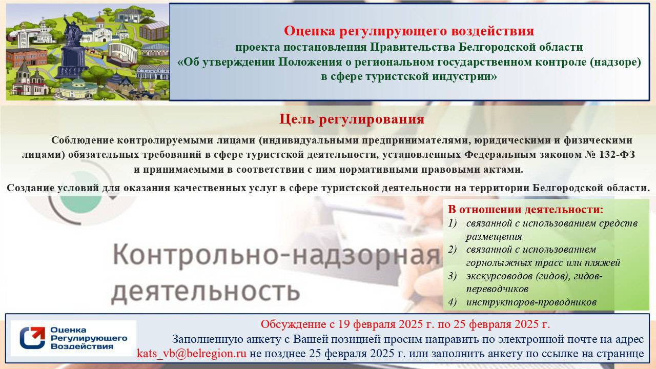Заключение об оценке регулирующего воздействия проекта постановления Правительства Белгородской области «Об утверждении Положения о региональном государственном контроле (надзоре) в сфере туристской индустрии»